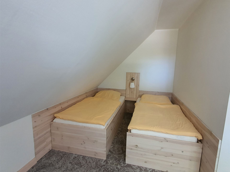 zwei Schlafräume (Doppelzimmer und Kinderzimmer mit drei Betten)