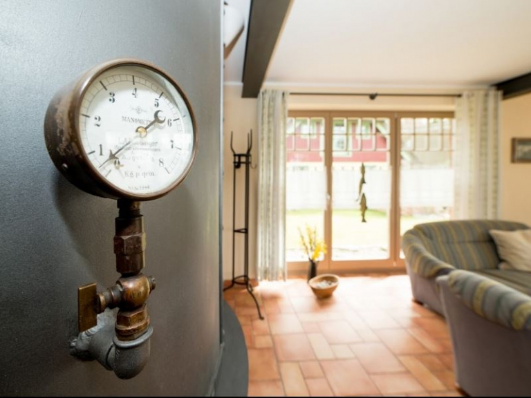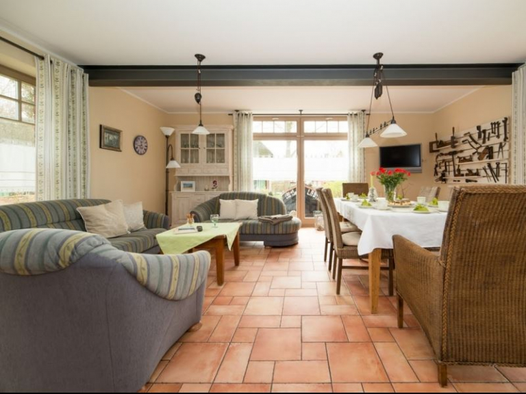 Unser reetgedecktes Schmuckstück atmet den Flair vergangener, arbeitsreicher Fischertage... Das antike Werkzeug hängt an der Wand, das Boot wartet vor der großen Terassentür darauf, das es in die Werkstatt gezogen wird. Aber keine Angst, wir haben alles dafür getan, damit Sie sich im Urlaub entspannen können: Eine Terrasse mit Teakholzmöbeln, ein Kamin im Stile eines alten Dampfkessels im sehr großen, gemütlichen Wohnraum, die Sauna und die Whirlwanne sorgen für Entspannung pur.