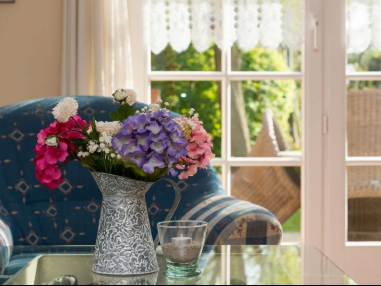 Wer konnte sich früher schon sein eigenes Reich leisten? Das reetgedeckte Kapitänshaus entführt Sie in die Zeit alter Seemannstraditionen, hier sind Sie der Kapitän! Unser gemütliches 85 qm großes Ferienhaus mit Kaminofen, Sauna, Whirlwanne ist mit seinen 2 Schlafzimmern für bis zu 5 Personen geeignet. Südterrasse, Teakholzmöbel und ein nahegelegener Spielplatz (nicht in Hörweite!) machen den Urlaub komplett.