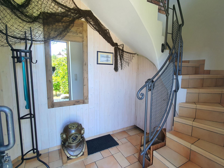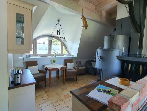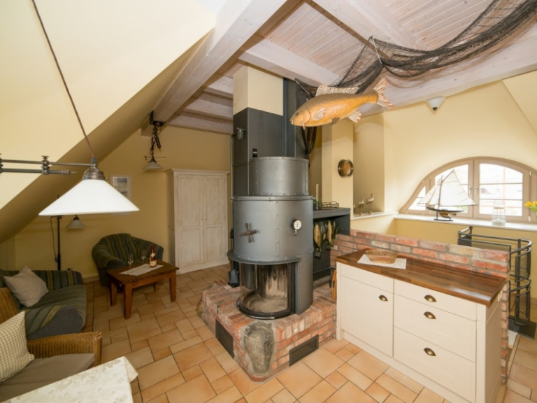 Früher hatte jedes Fischerhaus unter dem Dach eine Kammer, in der die Netze, getrocknet und gelagert wurden. Heute können Sie an dieser Stelle, wo früher das wichtigste Werkzeug der Fischer gehegt und gepflegt wurde, gemütlich Ihren Urlaub verbringen. Zwischen alten Netzen, Bootsbauwerkzeug und am Kamin im Stil eines Räucherofens werden Sie gedanklich in die Vergangenheit zurückversetzt, ohne auf den modernen Komfort verzichten zu müssen. Ein Ferienapartment für 2 Personen, ideal zum Kuscheln und Entspannen mit eigener Terrasse im Garten.