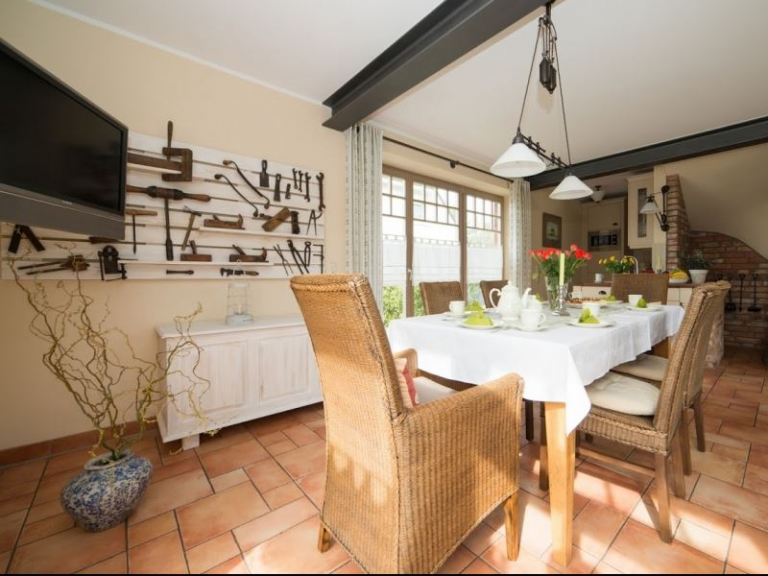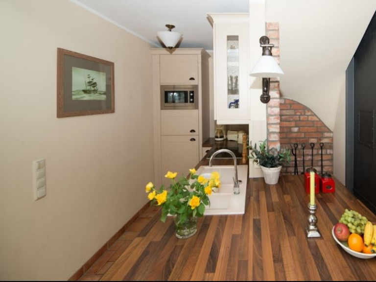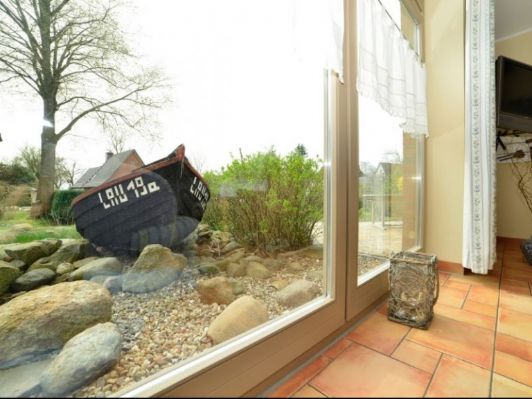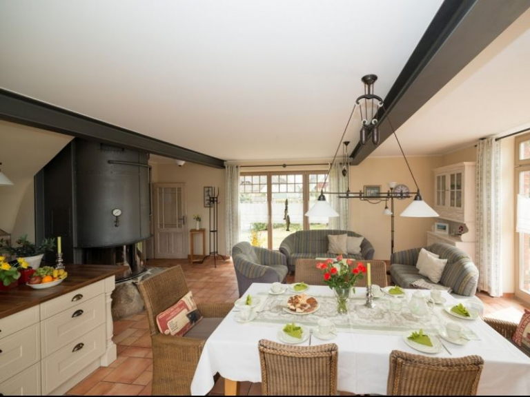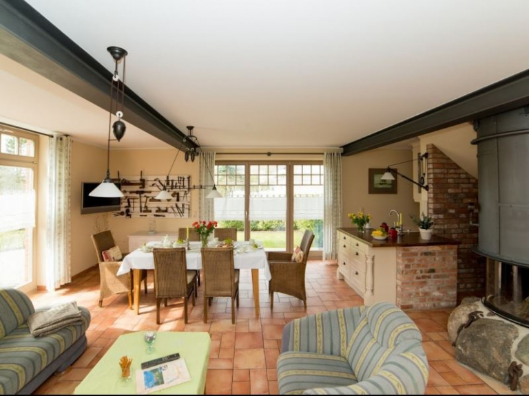 Unser reetgedecktes Schmuckstück atmet den Flair vergangener, arbeitsreicher Fischertage... Das antike Werkzeug hängt an der Wand, das Boot wartet vor der großen Terassentür darauf, das es in die Werkstatt gezogen wird. Aber keine Angst, wir haben alles dafür getan, damit Sie sich im Urlaub entspannen können: Eine Terrasse mit Teakholzmöbeln, ein Kamin im Stile eines alten Dampfkessels im sehr großen, gemütlichen Wohnraum, die Sauna und die Whirlwanne sorgen für Entspannung pur.