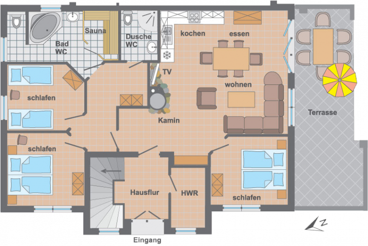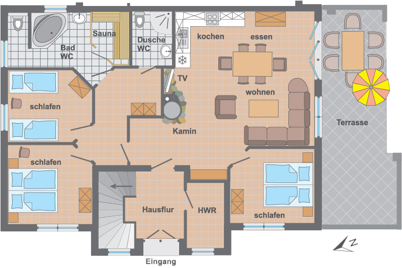 Ferienwohnung mit 105 qm Wohnfläche im Erdgeschoss