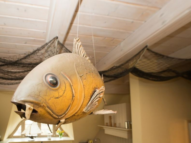 Früher hatte jedes Fischerhaus unter dem Dach eine Kammer, in der die Netze, getrocknet und gelagert wurden. Heute können Sie an dieser Stelle, wo früher das wichtigste Werkzeug der Fischer gehegt und gepflegt wurde, gemütlich Ihren Urlaub verbringen. Zwischen alten Netzen, Bootsbauwerkzeug und am Kamin im Stil eines Räucherofens werden Sie gedanklich in die Vergangenheit zurückversetzt, ohne auf den modernen Komfort verzichten zu müssen. Ein Ferienapartment für 2 Personen, ideal zum Kuscheln und Entspannen mit eigener Terrasse im Garten.
