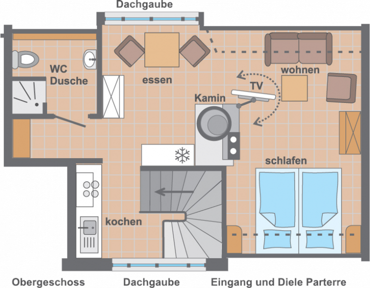 Ferienwohnung mit 50 qm Wohnfläche im Dachgeschoss eines schilfgedeckten Hauses