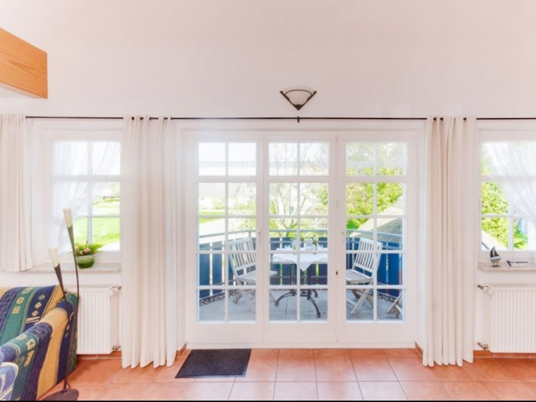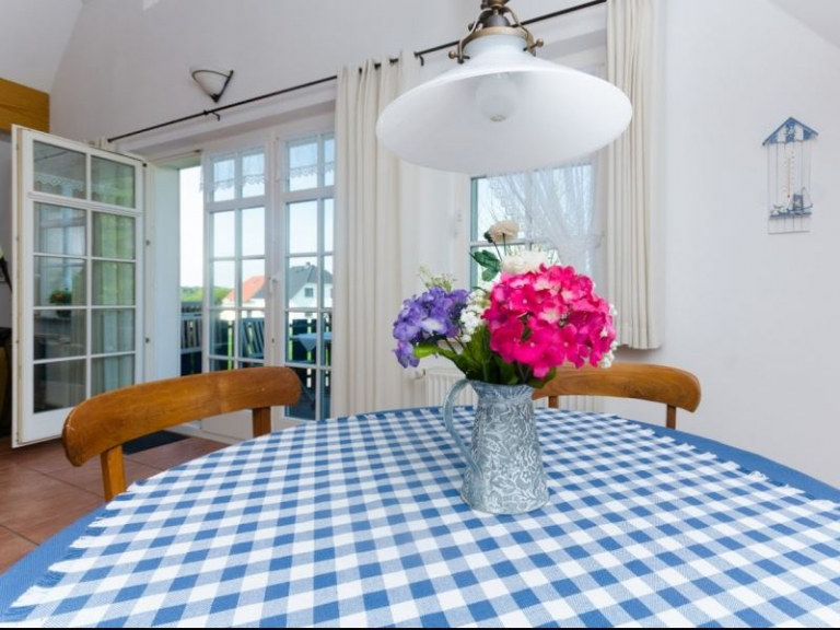 Die ideale Ferienwohnung für 2 Personen. Im großen und hellen Wohn- und Essbereich und auf dem Balkon mit Morgensonne und Ausblick auf unser "Schiffswrack" lässt sich bestens von vergangenen Seemannszeiten träumen. Das Schlafzimmer ist unter dem Dach in einer gemütlichen Schlafgalerie untergebracht, sie erreichen es über eine Wendeltreppe aus dem Wohnraum.