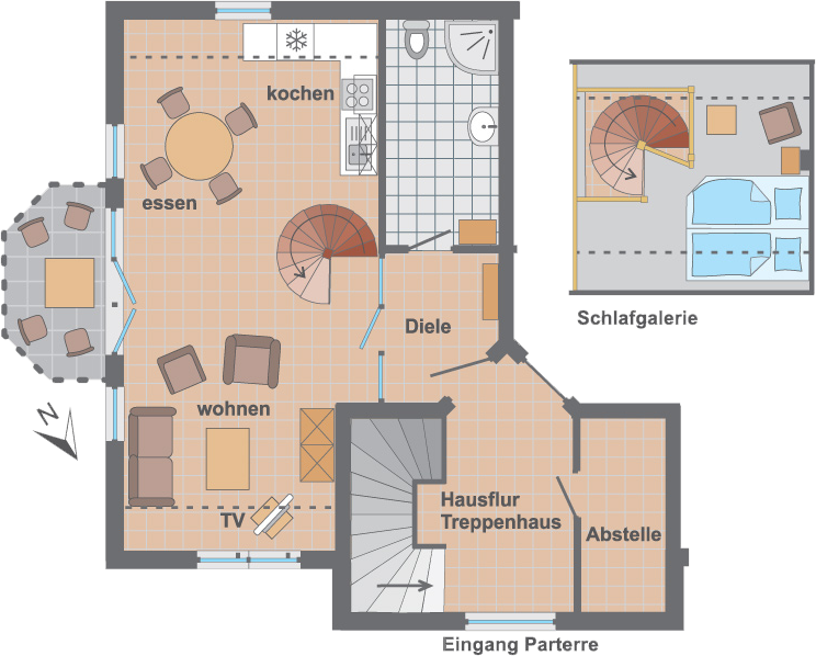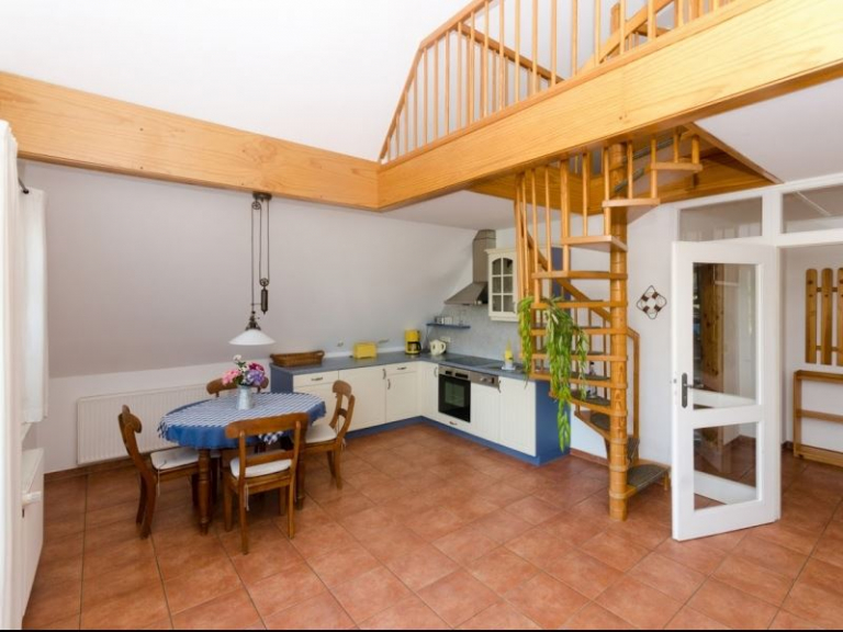 Ferienwohnung mit 56 qm Wohnfläche im Obergeschoss mit Schlafgalerie (Doppelbett)